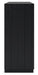 - Textured black wood stain with waxy topcoat