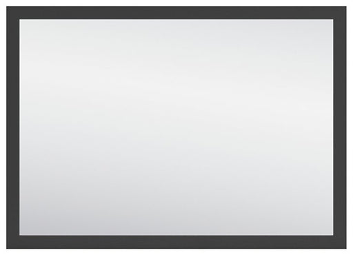 With its clean-lined look and modern attitude, this mirror is a fresh style awakening. A warm charcoal hue over replicated oak grain easily complem...